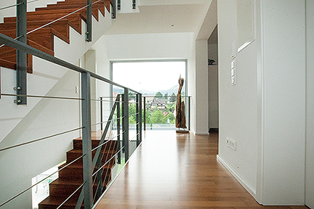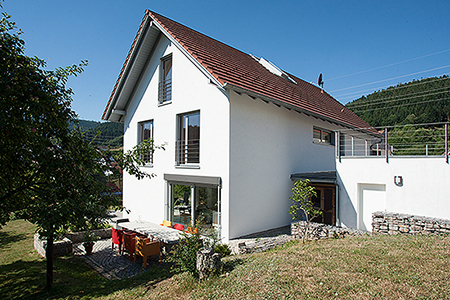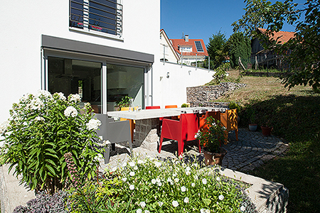 Gebäudeart: Neubau, Einfamilienwohnhaus mit Doppelgarage Keller: Nein Baujahr: 2007-2008 Konstruktion: Massivbau Heizung: Luft-Wärmepumpe mit Fußbodenheizung Ausstattung/Sonstiges: Zisterne für Gartenbewässerung, Garagenflachdach extensiv begrünt, Einbaumöbel, Firstverglasung, begehbarer Kleiderschrank, intelligente Gebäudetechnik, Parkett und großformatige Fliesen, bodenebene Dusche, Wäscheabwurfschacht, Inselküche Grundstücksgröße: 845 m² Umbauter Raum BRI: 1153 m³ Wohnfläche: 223 m² Nutzfläche: 72 m²