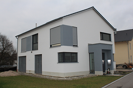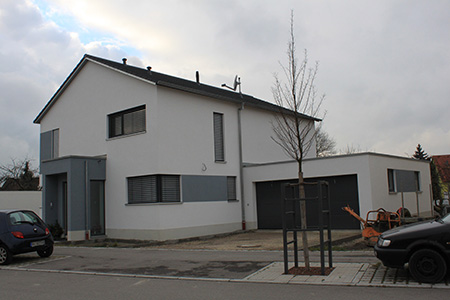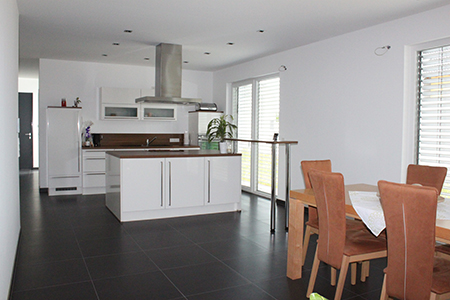 Gebäudeart: Neubau, Einfamilienwohnhaus mit Doppelgarage Keller: Nein Baujahr: 2010-2011 Konstruktion: Massivbau Heizung: Gasbrennwert mit Fußbodenheizung, Solarkollektoren Ausstattung/Sonstiges: Garagenflachdach extensiv begrünt, Einbaumöbel, Firstverglasung, großformatige Fliesen, bodenebene Duschen, Wäscheabwurfschacht, Kaminofen, Inselküche, Eckverglasung, Ankleidezimmer Grundstücksgröße: 536 m² Umbauter Raum BRI: 988 m³ Wohnfläche: 192 m² Nutzfläche: 62 m²
